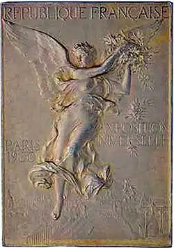 Автором и художником изображений на памятной медали оказался француз Жюль Шаплен, создавший олимпийские награды для победителей I Олимпиады в Афинах. На лицевой стороне медали — окрыленная богиня победы, парящая в воздухе, несёт победителя. В правой руке у неё венок и пальмовая ветвь. Победитель держит горящий факел. Надпись по-французски: «Exposition Universelle Internationale Paris 1900» — Международная Всемирная выставка. Париж. 1900. (англ. The international World's fair. Paris. 1900; фр. L'Exposition universelle internationale. Paris. 1900). Внизу на фоне панорамы Парижа выбита надпись: «Exercices Physiques Et Sports» -Физические упражнения и спорт (англ. Physical exercises and sports; фр. Les exercises physiques et le sport).