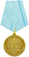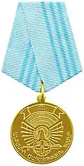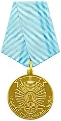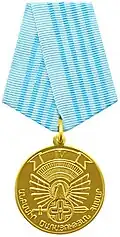 Медаль носится на левой стороне груди, после медали «За боевые заслуги».