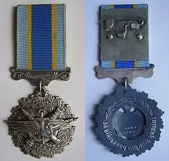 - Государственная награда Украины — медаль «За военную службу Украине»