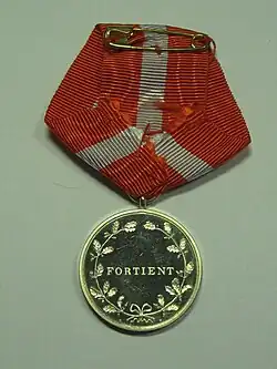 Реверс медали представляет собой надпись «FORTIENT» в окружении дубового венка.