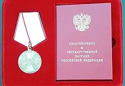 - ↑ Указ Президента Российской Федерации от 6 января 1999 года № 19 «О внесении изменений в Указ Президента Российской Федерации от 2 марта 1994 года № 442 „О государственных наградах Российской Федерации“». Дата обращения: 10 апреля 2011. Архивировано из оригинала 9 ноября 2014 года.