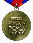 На оборотной стороне медали — на армянском языке надпись рельефными буквами: «Маршал Баграмян». Под ней крупными цифра «100». Внутри двух нолей цифры «100» ещё две цифры «1897» и «1997».
