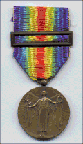Учреждена в 1922 году для французских военнослужащих в память о победе в Первой мировой войне. | Аверс: крылатая богиня Победы с поднятыми вверх руками: в правой —оливковая ветвь, в левой — лавровый венок. Внизу — инициалы скульптора.