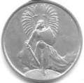 Аверс: фигура крылатой богини Победы (Ники) с мечом в правой руке, стоящая на земном шаре.