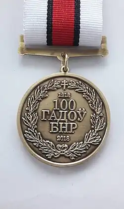 - ↑ МЕДАЛЬ ДА СТАГОДДЗЯ БНР: АПІСАННЕ Архивная копия от 31 октября 2021 на Wayback Machine, Сайт Рады БНР 19 лютага 2019