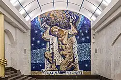 • Мозаичное панно с изображением Атланта, размещённое на станции, было подвергнуто «цензуре» — изображение пениса было «задрапировано»[11].