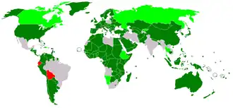 Подписали, но еще не ратифицировали договоры о вступлении: Белиз, Джибути, Доминиканская Республика, Эфиопия, Гвинея-Бисау, Намибия, Россия, Таиланд.