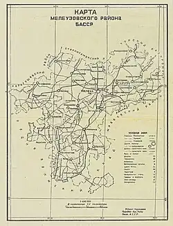 В Мелеузовский район как административно-территориальную единицу республики входит 1 город районного значения и 16 сельсоветов[31][32][33].