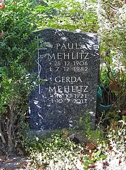 - ↑ Axel.Mauruszat. Deutsch: Grabstätte von Paul Mehlitz auf dem Friedhof Wilmersdorf in Berlin (20 сентября 2020). Дата обращения: 3 апреля 2024.