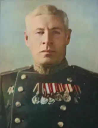 Участник Советско-японской войны 1945 года. С 1945 по 1947 год — командир 55-й бомбардировочной авиационной дивизии.
