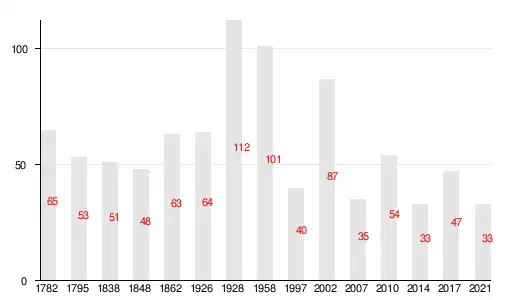 | 1782 | 1795 | 1838 | 1848 | 1862[25] | 1928 | 1958 |