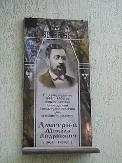 В этом доме 1894-1908 жил М. А. Дмитриев |