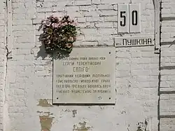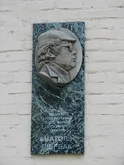 В этом доме с 1950-1994 г. жил и работал художник-экспозиционер, график, Заслуженный художник Украины Анатолий Терентьевич Щербак (1939-1994) (автор мемориальной доски Евгений Путря) |