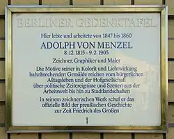 С 1856 году Менцель был действительным членом (академиком) Берлинской академии художеств и профессором там же.