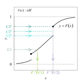 - Если строго возрастает, то . Таким образом, модифицированный алгоритм для произвольной функции распределения включает в себя отдельно разобранный случай строго возрастающей функции распределения.