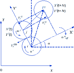 } cout << "Vipolnenie zadaniya" << endl; view(&b, &e, t); } Здесь Θij угол относительного поворота (это параметр переключения подобно hij трансляционного движения), qij(ji) это расстояние от центра автомата i(j) до точки контакта с автоматом j(i) (угловой момент), τij это парное тангенциальное взаимодействие, S(ij, ik(jl)) это особый коэффициент ассоциированный с параметром переноса Θ от одной пары к другой (это похоже на C(ij, ik(jl)) из уравнений трансляционного движения).