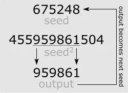 Для генерации последовательности n-значных псевдослучайных чисел создаётся n-значное начальное значение, образующее 2n-значное число. Если результат имеет менее 2n цифр, для компенсации добавляются ведущие нули. Средние n цифр результата будут следующим числом в последовательности и будут возвращены в результате. Затем этот процесс повторяется для получения большего количества чисел.