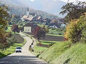 Южная муниципальная граница проходит по хребту Блауен, достигая высоты в 875 м (Challplatten/Brunnersberg, высочайшая точка коммуны)[1]. Западная граница — долина истока ручья Бирсиг, который начинается у перевала Challhöchi. На 2014 год около 8 % муниципальной территории составляли посёлки, 46 % — леса и 46 % — сельскохозяйственные земли[2].