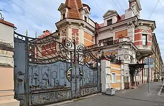 Особняк владельца, он же заводоуправление, стоит со стороны улицы Марата, в нём два этажа, здание асимметрично, декорировано в стиле французского ренессанса — у окон различный рисунок, башенка здания увенчана шатром, на фасаде выделяется трёхгранный эркер, присутствует металлический декор[3].