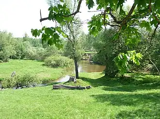 Находится недалеко от впадения речки Любосеевки в Ворю. Ближайшие населённые пункты — деревня Громково Богородского городского округа на противоположном берегу Вори и посёлок Медное-Власово.