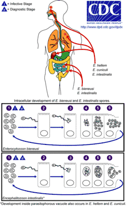 - 1 2 Microsporidiosis. Centers for Disease Control and Prevention. Дата обращения: 1 июня 2014. Архивировано 5 июня 2014 года.