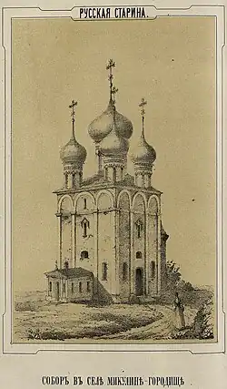 При этом к XVI веку предположительно уже существовал Михаило-Архангельский Микулинский мужской монастырь при соборе Михаила Архангела.[3] В 1546 году он упоминается в духовной княгини Александры Беззубцевой, в иночестве Ефросинии как "Михаил Архангел в Микулине".