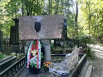 Скончался после непродолжительной тяжёлой болезни 23 июня 1966 года. Похоронен на Большеохтинском кладбище в Санкт-Петербурге[9]. Могила, на которой установлен гранитный памятник, находится на пересечении Московской и Смоленской дорог.