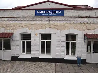Посёлок Милорадовка находится в 1,5 км от села Червоный Орлик. Через посёлок проходит железная дорога, станция Милорадовка.