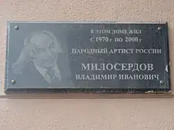 - ↑ Мемориальная доска Милосердову Владимиру Ивановичу. Сайт архиват.рф. Дата обращения: 5 июня 2015. Архивировано из оригинала 10 августа 2016 года.