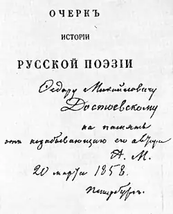 - 1 2 Милюков А. П. Очерк истории русской поэзии : [арх. 20 декабря 2016]. — Издание 2-е, дополненное. — СПб. : Типография Э. Веймара, 1858. — С. 216. — 236 с.