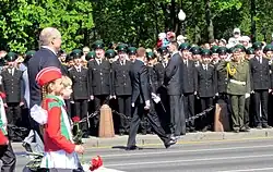 Президент РБ А. Г. Лукашенко проходит вдоль строя МГКУ № 2. Парад Победы 9 мая 2012 г., Минск, пр. Независимости.