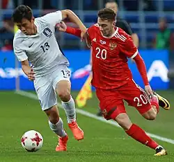 - ↑ Распоряжение Президента Российской Федерации от 27 июля 2018 года № 200-рп «О награждении Почётной грамотой Президента Российской Федерации спортсменов и специалистов спортивной сборной команды Российской Федерации по футболу». Дата обращения: 2 апреля 2019. Архивировано 2 апреля 2019 года.