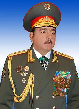 - ↑ Награды и генеральские звания офицерам силовых структур. Радио Озоди (20 февраля 2013). Дата обращения: 30 января 2025. Архивировано 30 января 2025 года.