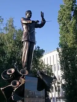 Памятник стоит на аллее, которую в народе называют «Аллеей военных дирижёров». Личное знакомство с дирижёром помогло в работе над скульптурой. Скульптору удалось уловить движения и жесты. Примечательно, что застывший жест дирижёра означает «музыку».
