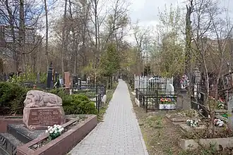 - Дзига Вертов (1896—1954) — выдающийся советский кинорежиссёр и сценарист, один из основателей и теоретиков мирового документального кино. В 1954 году был похоронен на Миусском кладбище рядом с матерью, в 1967 году перезахоронен на Новодевичьем кладбище (участок № 6).[3]