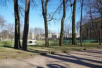 ![]() Вид на большую лужайку Михайловского сада и Михайловский дворец | |