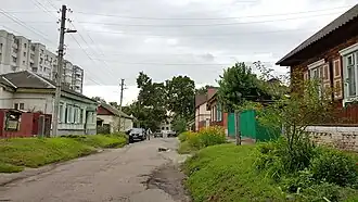 Парная и непарная стороны улицы заняты усадебной застройкой.