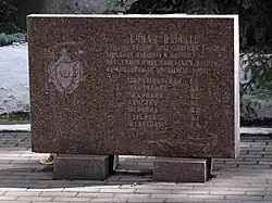 Представляет собой прямоугольную стелу из красного гранита размером 1,2×1,8 м, установленную на двух пилонах.