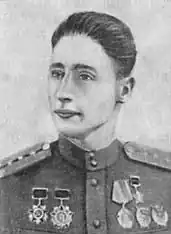 - ↑ Указ Президиума Верховного Совета СССР «О присвоении звания Героя Советского Союза офицерскому составу военно-воздушных сил Красной Армии» от 4 февраля 1944 года // Ведомости Верховного Совета Союза Советских Социалистических Республик : газета. — 1944. — 17 февраля (№ 10 (270)). — С. 1. Архивировано 8 марта 2022 года.