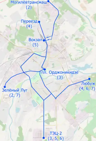 - Также при перекрытии каких-то сетей может работать маршрут №10 (пл. Орджоникидзе — Любужский лесопарк или другой маршрут), а маршрут №2 следует по проспекту Мира, площади Космонавтов и поднимается по подъёму к основному маршруту. Может работать маршрут 3К (ТЭЦ-2 — площадь Орджоникидзе) и прочие маршруты которые идут через перекрытые сети