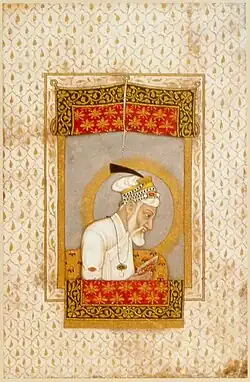 Основатель династии Бабур после безуспешной борьбы за власть в Мавераннахре, был вытеснен из Средней Азии войсками узбекского Шейбани-Хана в Афганистан. Оттуда Бабур повёл завоевательные походы в Северную Индию, и после того, как в 1526 и 1527 годах одержал две блистательные победы, закрепился в Индостане, положив начало династии Великих моголов. Он был образованным, имевшим широкий кругозор человеком: писал стихи, а его мемуары «Бабур-наме» содержат живописные картины наблюдения природы. Бабур был любителем и собирателем книг. О его неравнодушии к живописи свидетельствует упоминание им в мемуарах прославленного художника Бехзада, причем, с критическим оттенком (наряду с традиционными восторгами Бабур пишет, что у Бехзада плохо получались безбородые лица).
