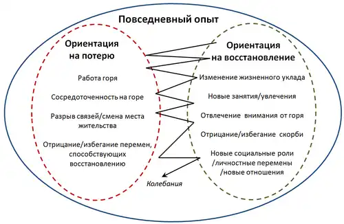 - ↑ Stroebe M.S., Schut H. The dual process model of coping with bereavement: rationale and description. // Death Stud., 1999, Vol.23. — P.197-224.