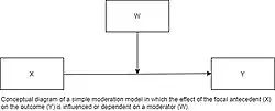 Модерация в статистике и регрессионном анализе — зависимость связи между двумя переменными от третьей переменной, которая называется модератором[1]. Эффект модератора статистически характеризуется как взаимодействие; то есть категориальная (пол, этническая принадлежность, класс) или количественная (уровень заработной платы) переменная, которая влияет на направление и/или силу связи между зависимыми и независимыми переменными. В частности, в корреляционном анализе модератором является третья переменная, которая влияет на корреляцию нулевого порядка между двумя другими переменными, или наклон зависимой переменной к независимой переменной. В дисперсионном анализе основной снижающий эффект может быть представлен как взаимодействие между основной независимой переменной и фактором, задающим соответствующие условия её функционирования[2].