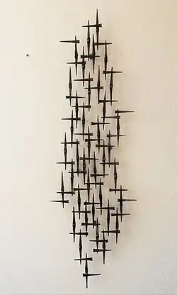 Зародившийся в США стиль вскоре превратился в международный, включавший в себя скандинавский, итальянский, чешский и немецкий дизайн. Дисциплины были едва разделены. Скульпторы, такие как Гарри Бертойя, разработали мебель, как и архитекторы Ээро Сааринен, Джордж Нельсон, Норман Чернер и Ричард Нейтра, которые любили дополнять свой новый стиль строительства своими собственными дизайнерскими находками.[4] В Америке Герман Миллер (который также работал с Джорджем Нельсоном, Чарльзом и Рэем Имсом) и Флоренс и Ханс Нолл были известны как стильные мебельщики.
