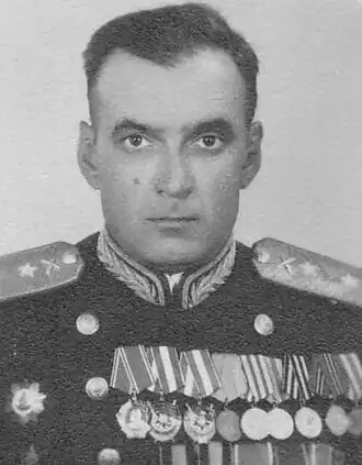 - ↑ указ Президиума ВС СССР от 31.05.1945 в электронном банке документов «Подвиг народа» (архивные материалы ЦАМО. Ф. 33. Оп. 686046. Д. 170. Л. 100).
