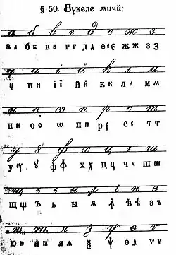 Алфавит был очень близок к современному ему церковнославянскому; отличия в составе алфавита (на конец XVIII и XIX века) таковы: