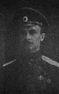 Произведен в капитаны 4 марта 1917 года «за отличия в делах против неприятеля», в подполковники — 6 октября того же года.