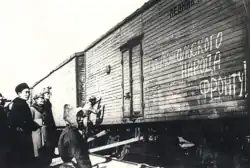 В МНР был создан Фонд помощи РККА. В октябре 1941 года граждане МНР сформировали и отправили первый поезд с подарками, состоявший из 15 тысяч комплектов зимнего обмундирования, около 3 тысяч индивидуальных посылок на сумму более 1,8 млн. тугриков[2]. Государственному банку СССР было передано наличными 587 тысяч тугриков[2]. К концу 1944 года из МНР было отправлено 8 поездов с продовольствием и обмундированием на сумму более 25,3 млн тугриков[2]. В начале 1945 года был отправлен последний, 9-й поезд подарков, состоящий из 127 вагонов[3].