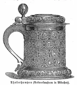 В немецкой культуре с XVI по XIX век были распространены кру́жки из драгоценных металлов со впаянными в них монетами (до нескольких десятков штук), обычно талерами, отчего они называются нем. Thalerhumpen (буквально «Чаша с талерами»).