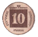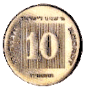 24,5 | 1,6 | Аверс: амфора и две стилизованные пальмовые ветви; текст «Израиль» на иврите и арабском языке; Реверс: цифра «10»; текст «прутот» и дата выпуска на иврите; две стилизованных ветви оливы по кругу. |